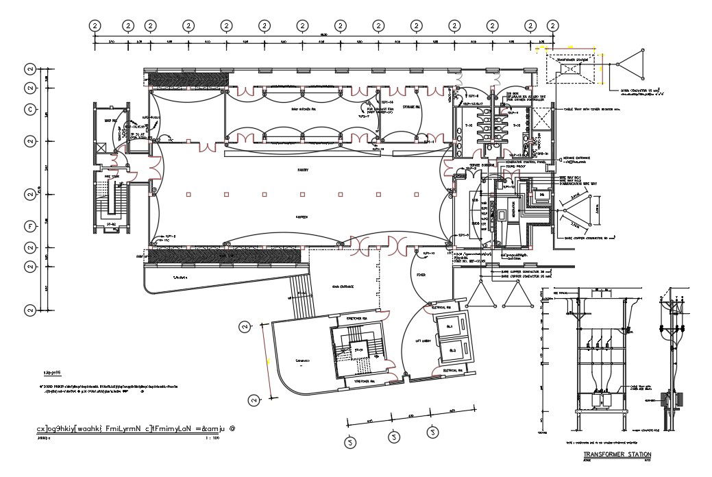 The hospital floor plan CAD drawing which consist canteen with dining area, kitchen, cable tray with cover 800X100 mm, communication wire way with electrical layout design with centre line plan. This drawing is copyrighted All contractors must verity all dimensions on site. Only figured dimensions and grid line are to be worked from. Discrepancies must be reported immediately to the architect or engineer concerned before further action.