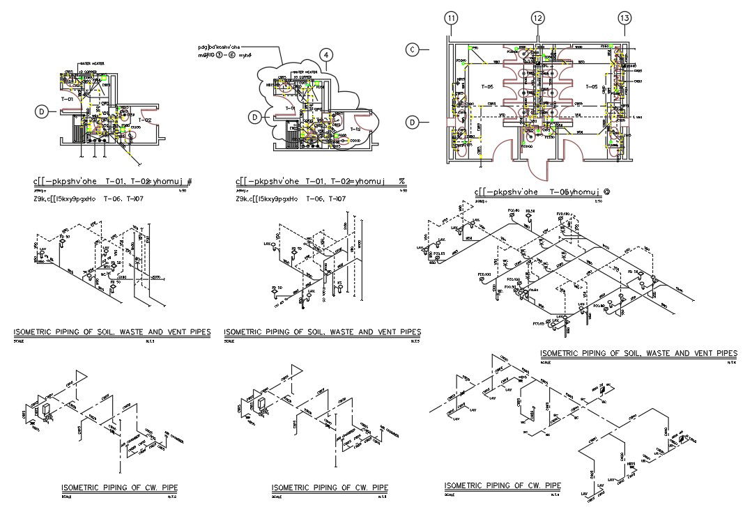 Public Toilet Plan With Isometric Pipe Drawing DWG File