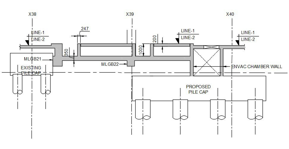 Proposed and Existing pile cap section details are given in this AutoCAD 2D Drawing file. Pile cap section details and Encav chamber wall is mentioned.sectional details are given clearly. Download the AutoCAD 2D DWG file. Thank you so much for downloading the DWG file from the cadbull website.