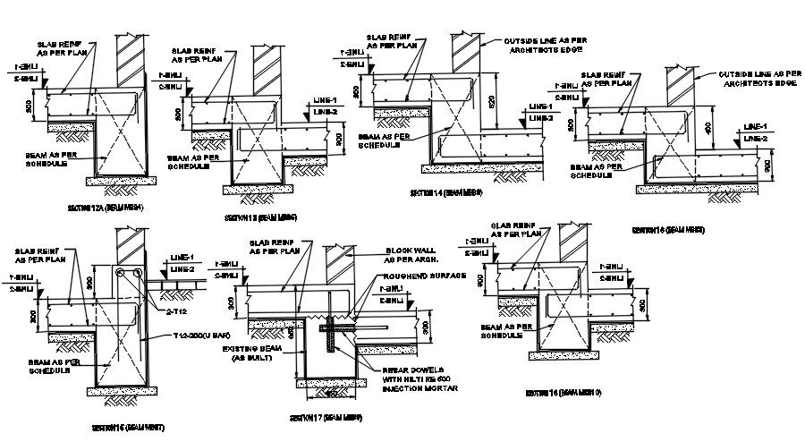 This drawing presents about construction details in this file. this file consist of existing beam, roughen surface, beam as per scheduled, epoxy layer, slab detail as per plan.this drawing can be used in working drawing detail. Download this 2d autocad drawing file.