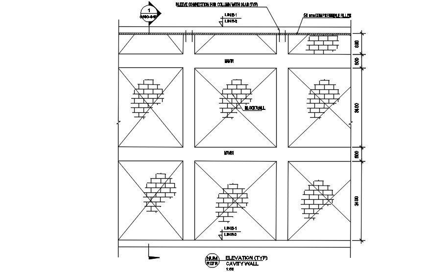 Cavity wall elevation details are given in this AutoCAD 2D Drawing file. Moreover, Blockwall, compressible filler, and sleeve connection for column with slab are mentioned. sectional details are given clearly. Download the AutoCAD 2D DWG file. Thank you so much for downloading the DWG file from the cadbull website.