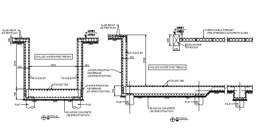 Section detail of Construction for reinforcement detail shown in this autocad file. Download the Auto Cad 2D DWG file now.