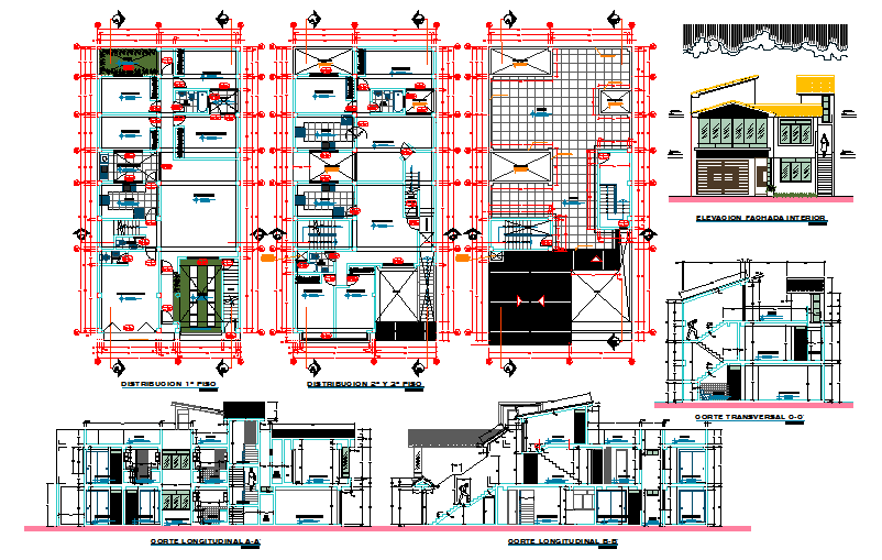 Duplex House detail. Ground floor Lay-out, First floor Lay-out detail & section cutting detail & terrace plan, Elevation detail also include with concrete detail.