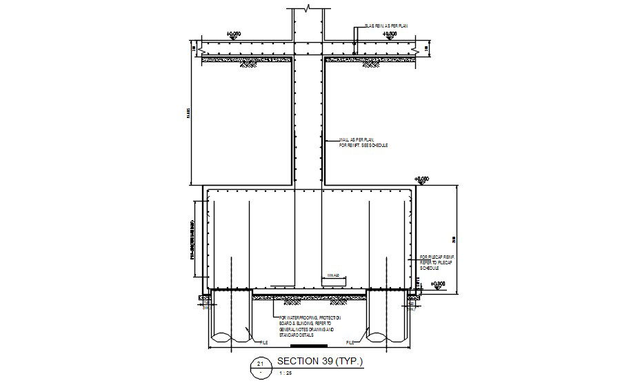Column and slab reinforcement details of the pile cap section are given in this AutoCAD 2D Drawing file. waterproofing reinforcement, slab reinforcement as per plan, and pile cap are mentioned. sectional details are given clearly. Download the AutoCAD 2D DWG file. Thank you so much for downloading the DWG file from the cadbull website.