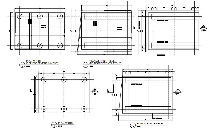 Reinforcement Layout details and plans at the plinth level are given in this AutoCAD 2D Drawing file. Download the free AutoCAD file.