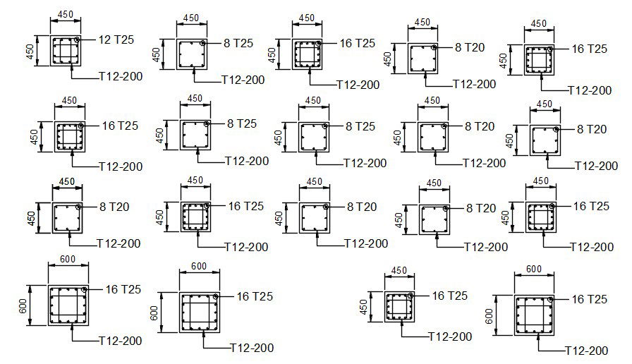 Steel Bar Reinforcement details are given in this AutoCAD 2D Drawing file. column steel bar reinforcement details and dimensions are mentioned. sectional details are given clearly. Download the AutoCAD DWG file. Thank you so much for downloading the DWG file from the cadbull website.