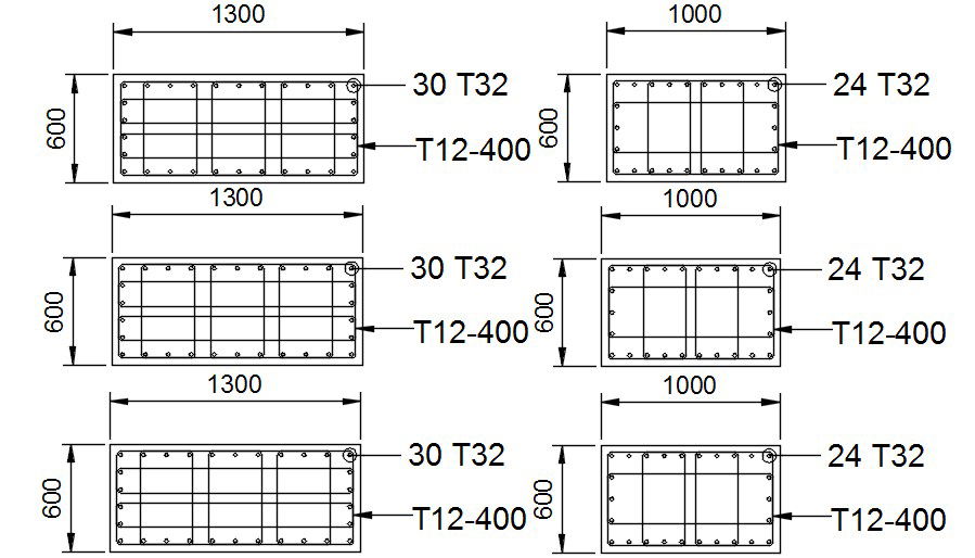 1300mm X600mm and 1000mmX600mm Steel Bar Reinforcement details are given in this AutoCAD 2D Drawing file.Download the AutoCAD DWG file.