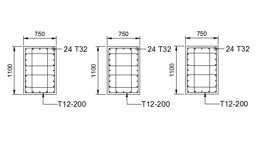 750mm X1100mm rectangular Steel Bar Reinforcement details are given in this DWG CAD 2D Drawing file.Download the AutoCAD DWG file.