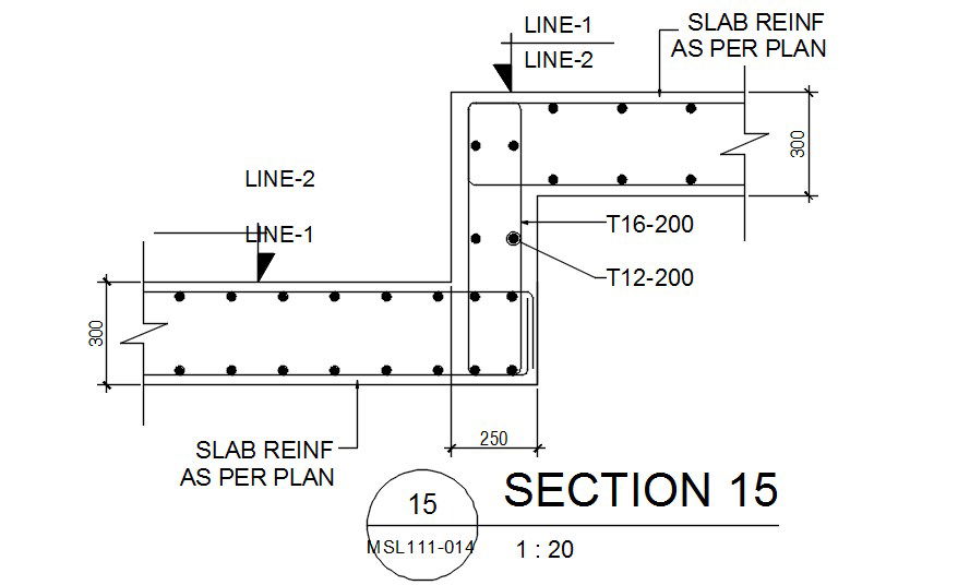 Section Detail Drawing of Reinforcement given in this autocad drawing file.which is consist of beam and column as per scheduled and slab detail also mentioned with steel bar drawing with T16-200 & T12-200 of 300X300. this drawing can be used for civil drawing, working drawing. Download this 2d autocad drawing dwg file.