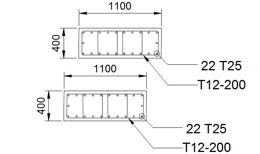 1100mm X400mm rectangular Reinforcement Steel Bar details are given in this AutoCAD DWG Drawing File.Download the AutoCAD DWG file.