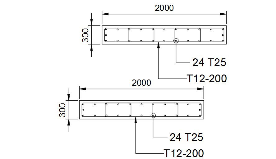 2000mm X300mm rectangular Steel Bar Reinforcement details are provided in this DWG CAD 2D Drawing file.Download the AutoCAD DWG file.