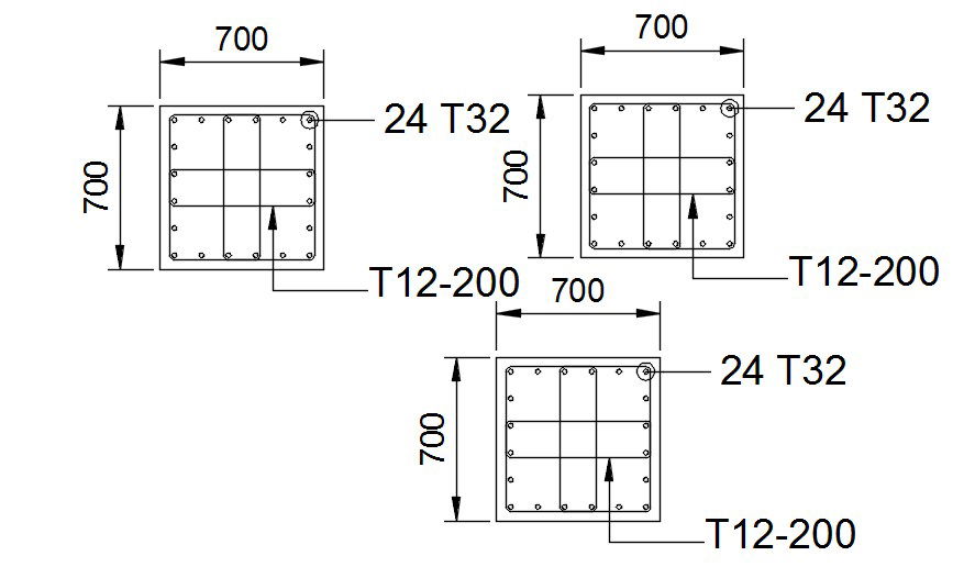 700mm X700mm Square Steel column Reinforcement details are given in this DWG CAD 2D Drawing file. The column steel bar reinforcement details and dimensions are mentioned. The sectional details are given clearly. Download the free AutoCAD DWG file. Thank you so much for downloading the DWG file from the cadbull website.