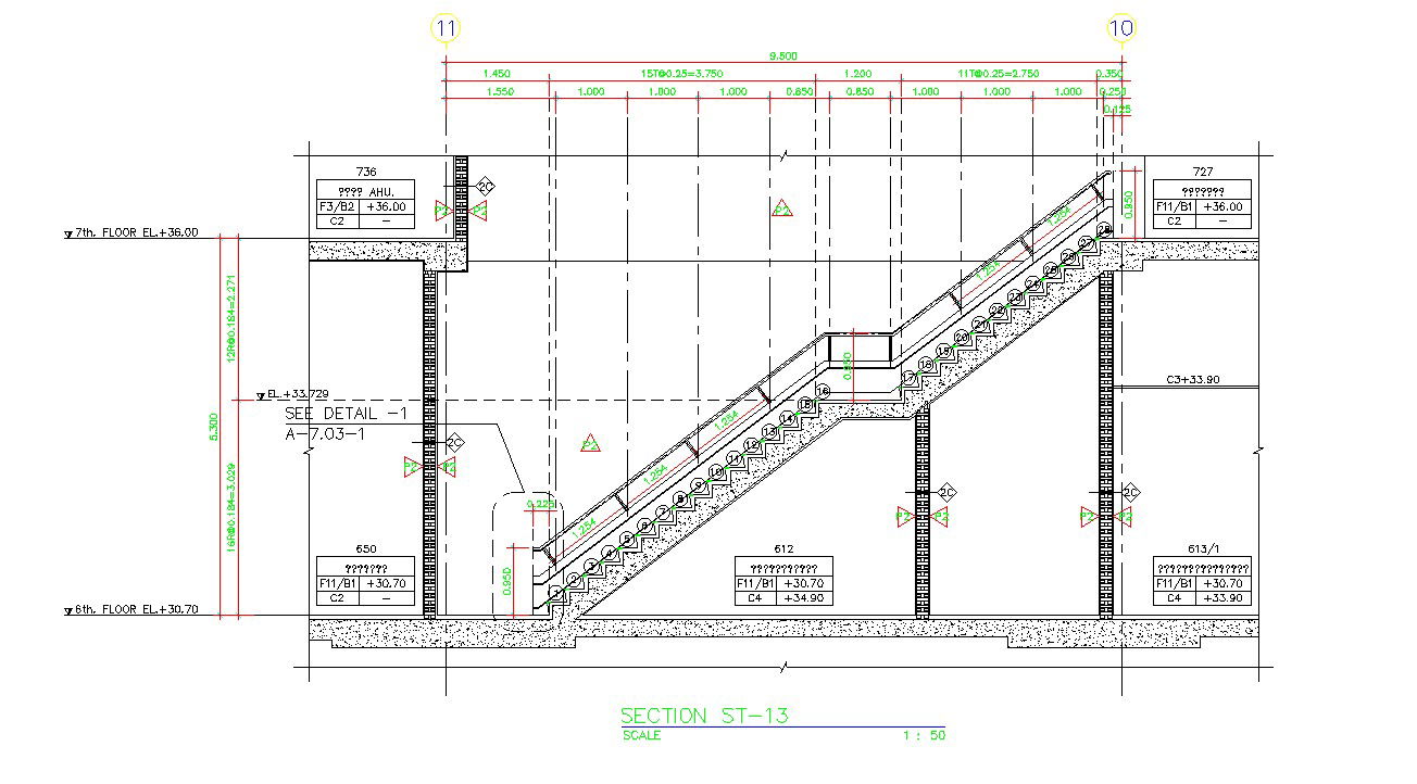 The staircase sectional details with column support and handrail are given in this AutoCAD DWG Drawing File. In this file, the Staircase detailed sectional details, handrail, column support and stair concrete reinforcement details were clearly shown. The section detail and the dimension were also are given clearly in this drawing. Download the AutoCAD file now. Thanks for downloading the file and another CAD program from the cadbull website