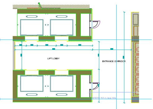 Dimensions detail of lift corridor given in this autocad drawing file. Download this 2d AutoCAD drawing file.