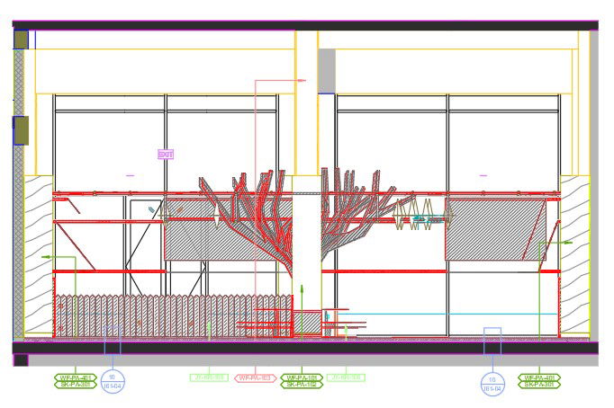Elevation detail of the clubhouse showing in this AutoCAD drawing file. In this file, you will have a standing wall and tree elevation with hanging lights. This can be useful for architecture drawing, and working drawing. Download the Auto Cad 2D DWG file now.