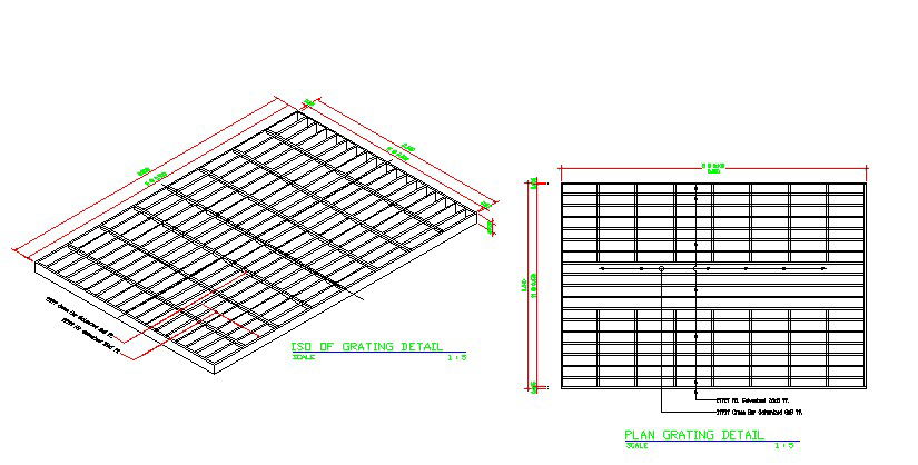 Isometric view of grating and plan of the grating is given in this CAD Drawing file. Download the free AutoCAD file now.