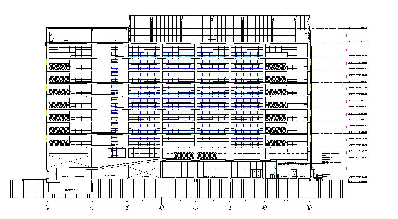 G+10 office Building front elevation details are given in this AutoCAD Drawing File. In this file, the front view of the building was clearly shown. The section detail and the height of the building were also are shown clearly in this drawing. Download the AutoCAD file now. Thanks for downloading the AutoCAD file and another CAD program from the cadbull website.