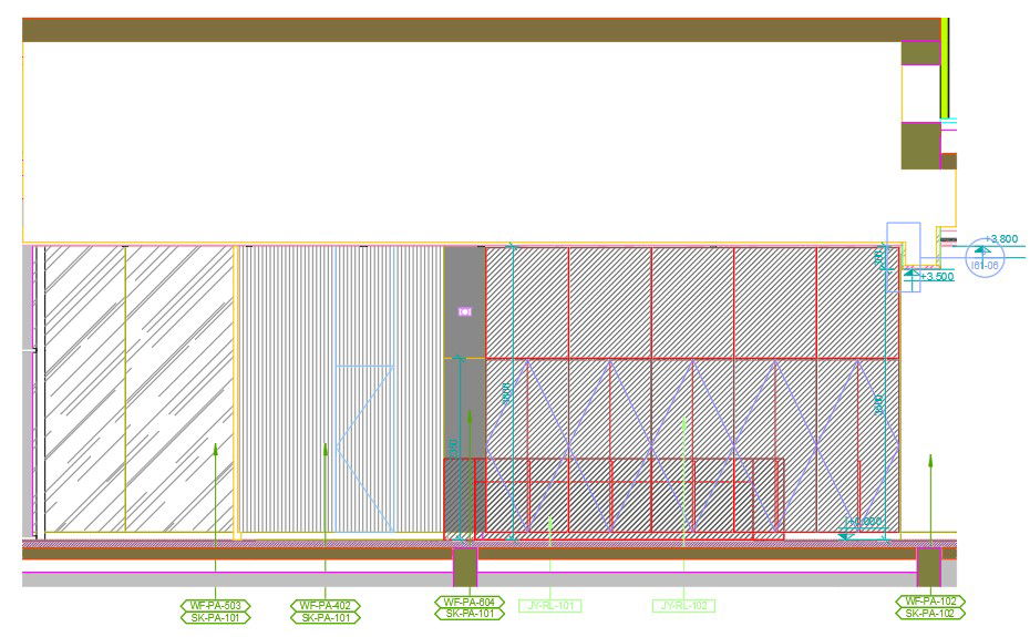 Detail drawing of the section about a reception given in this AutoCAD drawing file. In this file, you will have wood paneling, door detail, and beam-column detail. and platform detail with naming. This can be useful for architecture drawing, interior drawing, and working drawing. Download the Auto Cad 2D DWG file now.