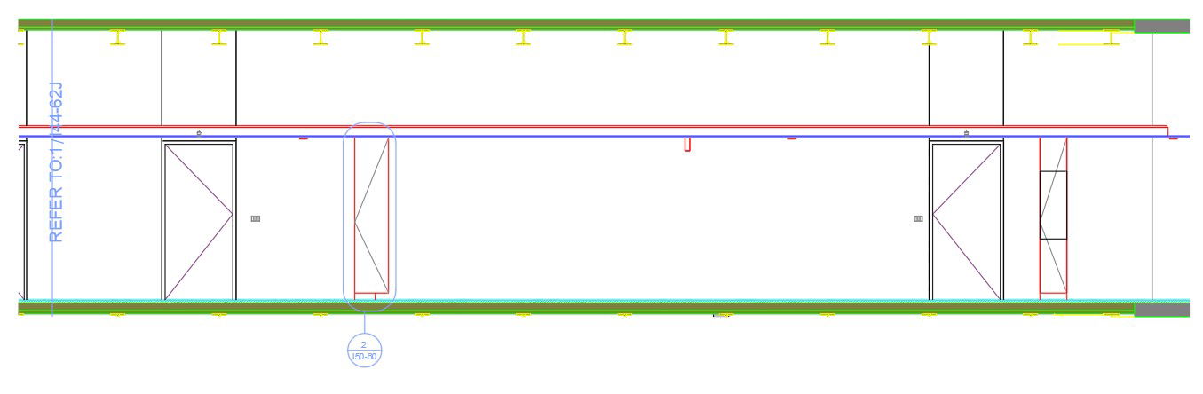 Section detail of hotel corridor presents in this AutoCAD drawing file. Download this 2d AutoCad drawing file.