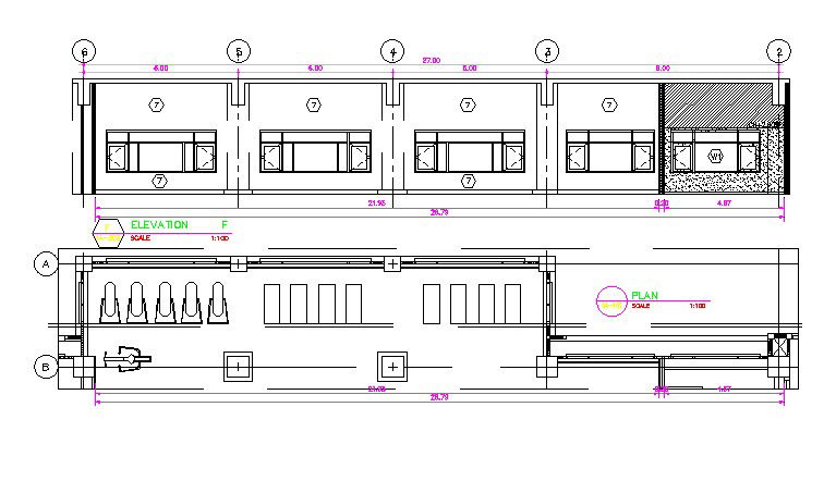 The gym building floor plan and the elevation are given in this AutoCAD DWG file. Download the 2D AutoCAD DWG file now.