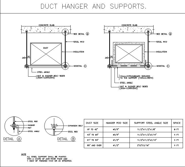 The Duct hanger and support section details are given in this AutoCAD DWG file.The steel rod and insulation were also shown clearly in this drawing.