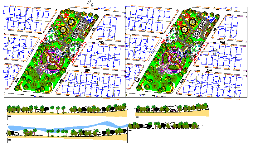 Urban Garden Design in DWG file