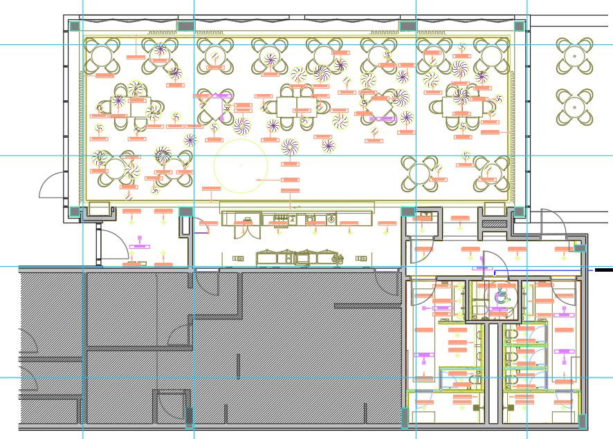 The beach restaurant light set up a plan showing in this cad drawing file. Download this 2d autocad drawing file.