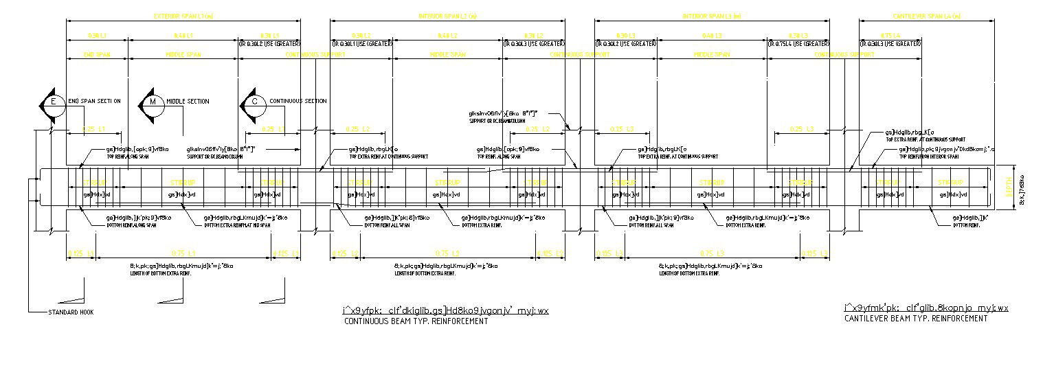Detail CAD Blocks Continuous Beam Reinforcement DWG file