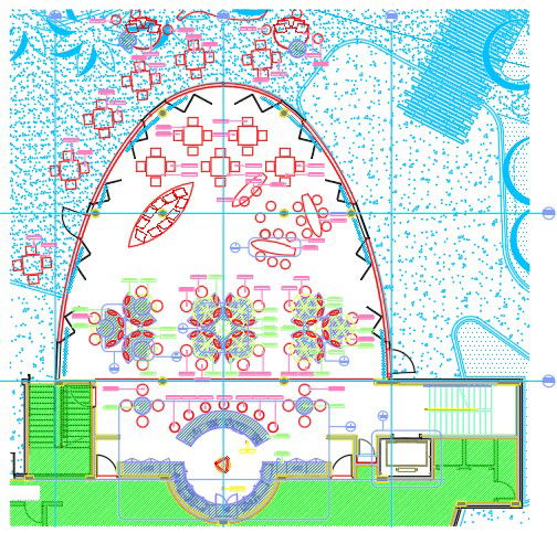 Furniture layout plan of beach side restaurant specified in this autocad drawing file. Download the Auto Cad 2D DWG file now.