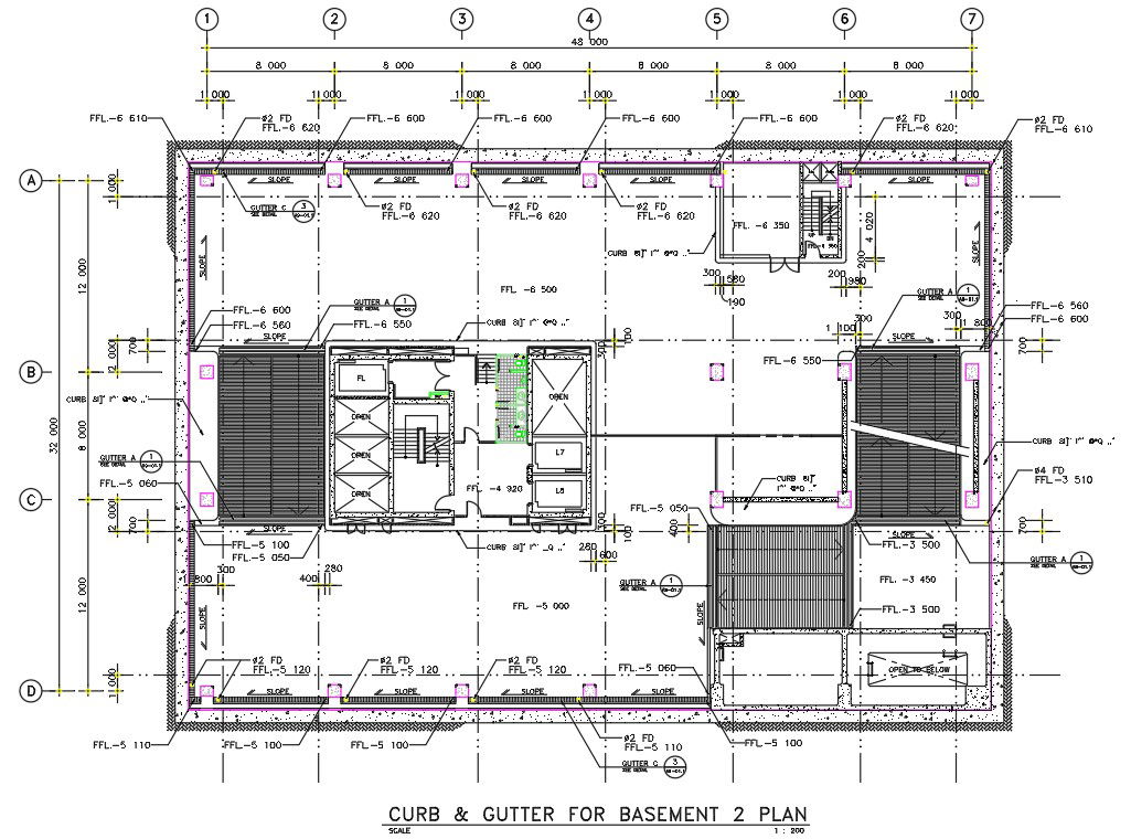 The AutoCAD drawing of corporate office building floor plan with plumbing layout design which consist curb, gutter and curb and gutter provide contraction joints contraction joints adjacent to concrete pavement on tangents and flat curves are to match the pavement joints, with intermediate joints not to exceed gutter and curb and gutter expansion joints shall be located in accordance with section drawing. Thank you for downloading the autocad 2D DWG drawing file and other CAD program files from our cadbull website.