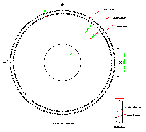 The plan of chimney shell wall RC details is given in this AutoCAD DWG file. Download the free CAD DWG file now.