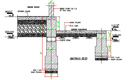 The section details of the Columns and flooring are provided in this AutoCAD DWG Drawing File. In this file, Dimensions, Plinth beam, wooden floor, verandah,RR masonry, brickwork, sand filling, red earth, and the typical section details are mentioned clearly in this drawing. Thanks for downloading the AutoCAD files from the cadbull website. Download the 2D CAD DWG file now.