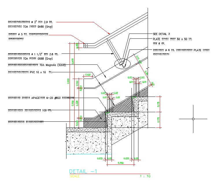 Typical Cut section detail of the staircase is given in this AutoCAD drawing file. Download the AutoCAD file now.