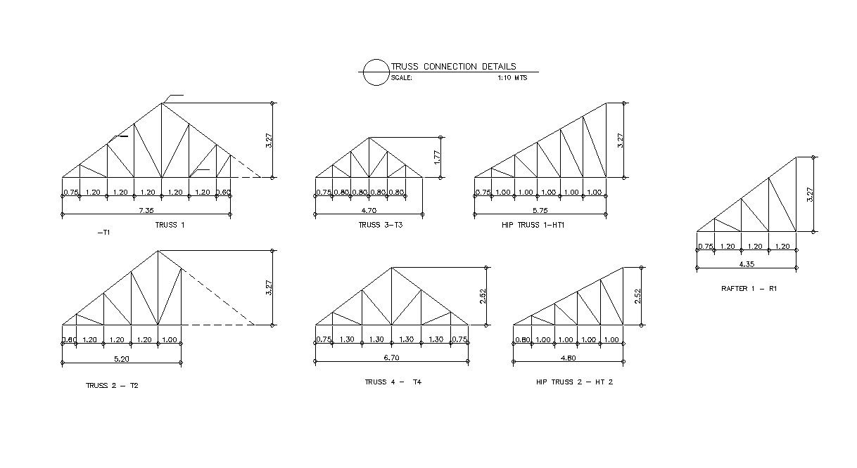 Truss Connection section details AutoCAD DWG drawing file is provided. Sectional details and the dimensions are clearly given in this drawing file. Also, the slope and the dimensions are mentioned in this DWG file perfectly. Download the AutoCAD 2D DWG file. Thank you so much for downloading DWG file from our website