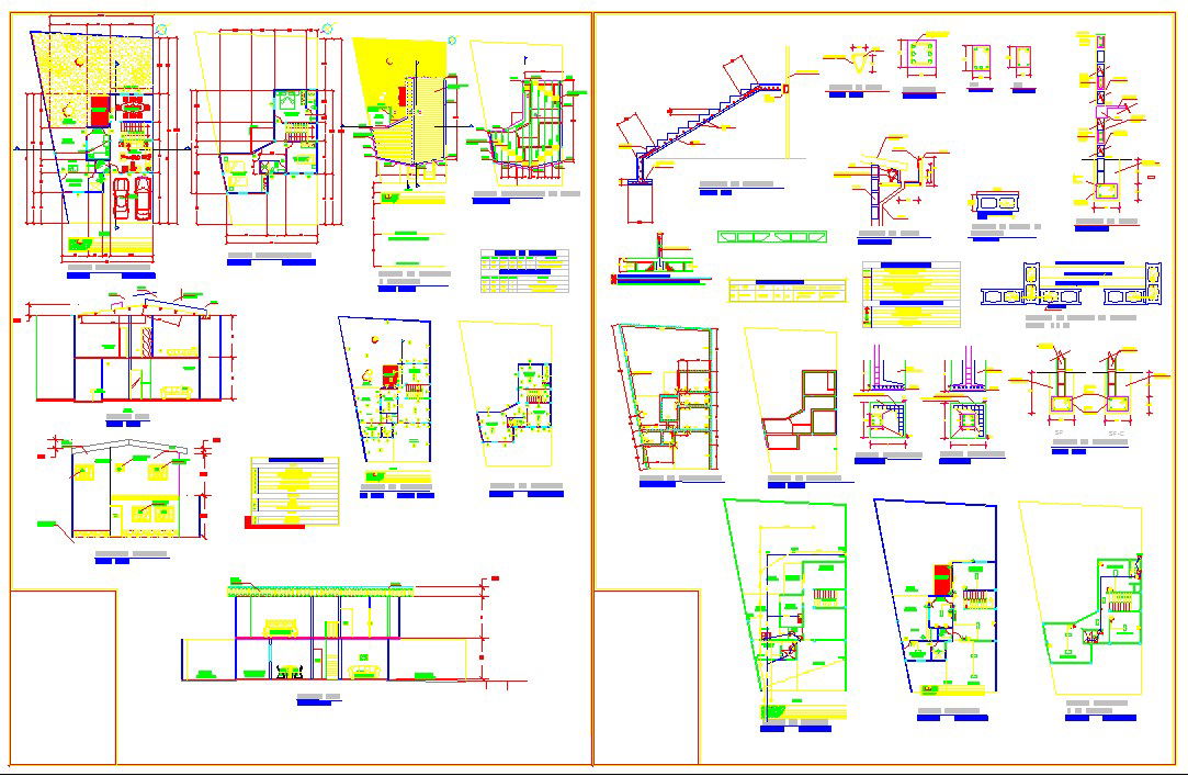 House constructions detail include presentaions plan, working plan, sections, elevations, detail of rcc, detail of column and steel detail.