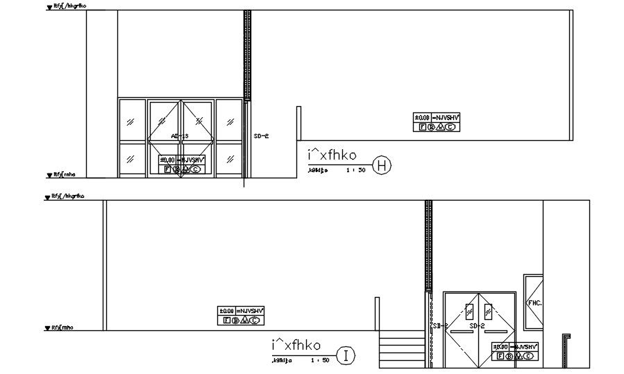 Sectional elevation detail drawing specified in this 2d Auto-CAD drawing fie. facade detail with Door - window detail is given in this cad file. This drawing made by a 1: 50 scale. this can be used for architectural and working drawings. Thank you for downloading this 2d AutoCAD drawing file.