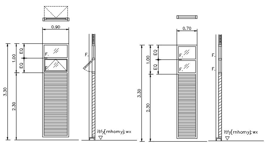 Shutter door with ventilator section and elevation details are provided in this AutoCAD 2D DWG drawing file.Download the AutoCAD 2D DWG file.