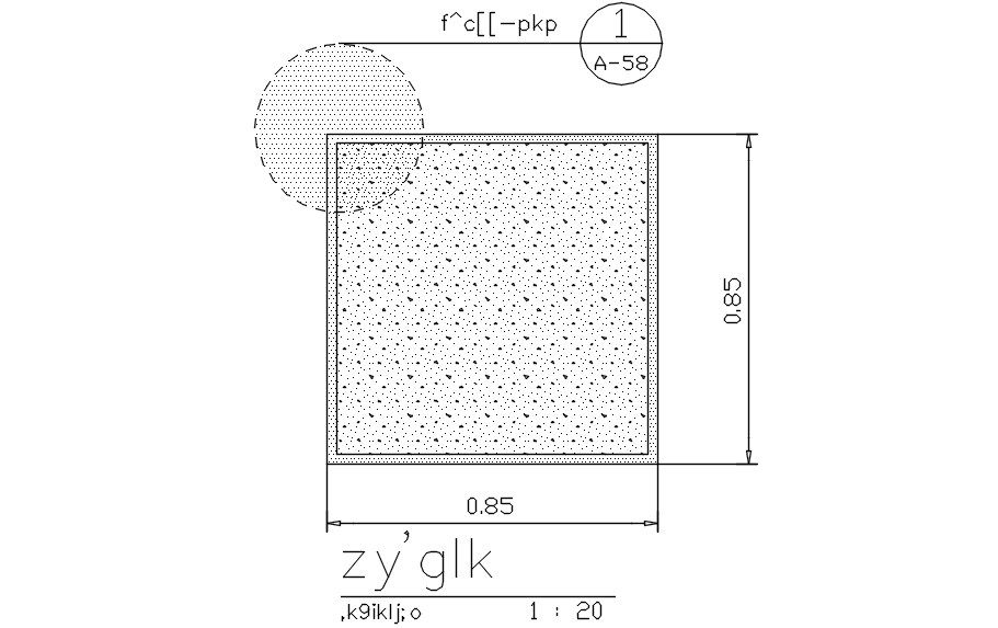 0.85 x 0.85 size of column detail specified in this AutoCAD drawing file. in this file enlarge detail of the column detail and made it by 1:20 scale. this can be used for structure detail and construction detail. Download this 2d AutoCAD drawing file.