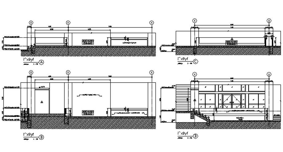 Staircase, door, and window front elevation section details are given in this AutoCAD 2D DWG file. Download the AutoCAD 2D DWG file.