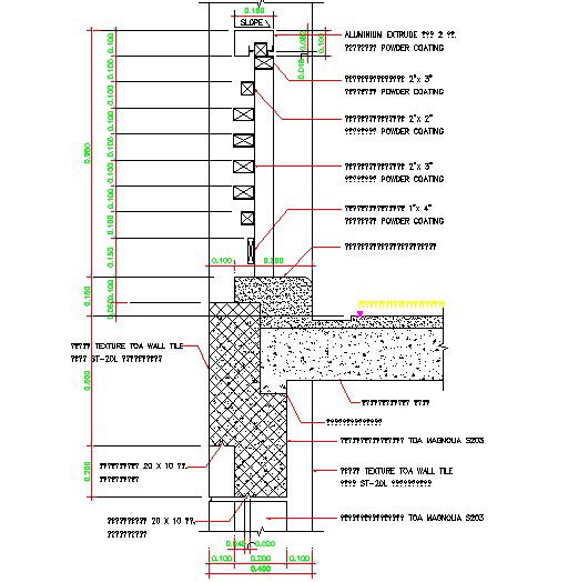 column and beam Typical section details AutoCAD 2D DWG drawing file is given. In this drawing file, Texture toa wall tile, Toa magnolia, powder coating, aluminum louver, Sectional details, and the dimensions are clearly given in this drawing file. Download the AutoCAD DWG file. Thank you so much for downloading DWG file from our website