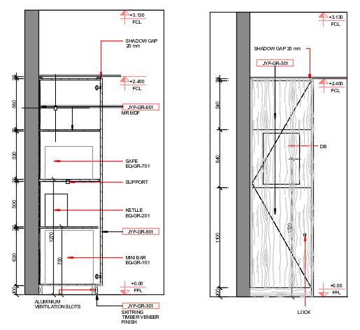 This cad drawing file about section detail of the wardrobe with side elevation. Download this 2d AutoCAD drawing file.