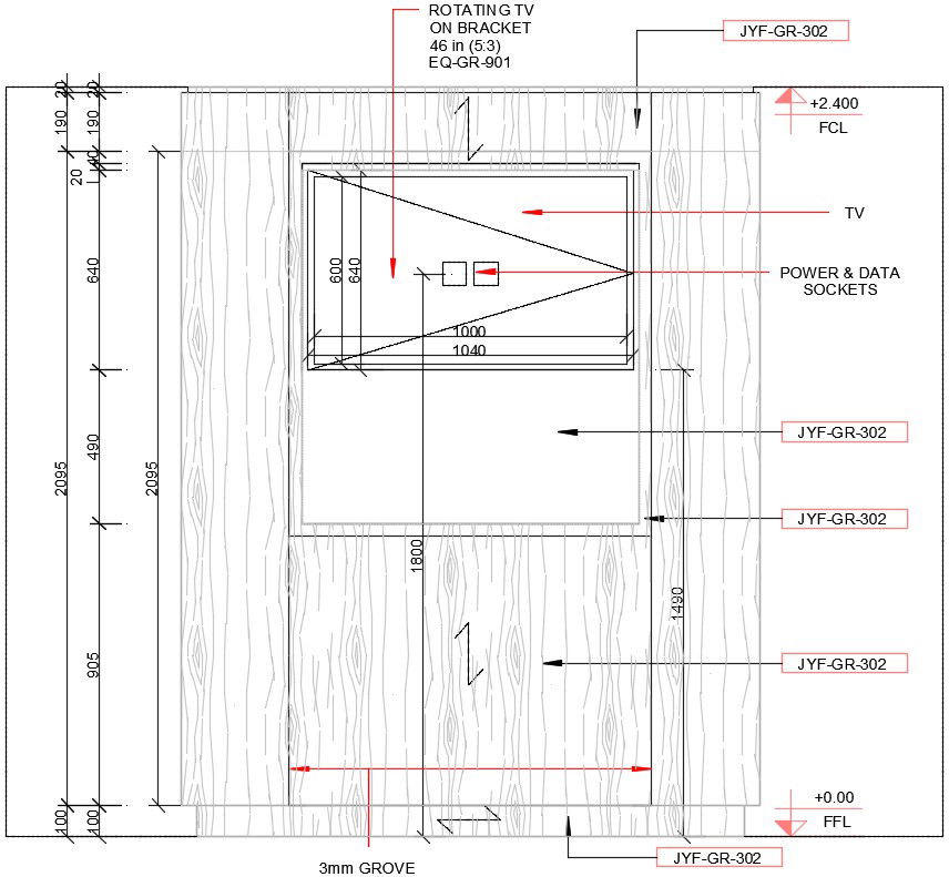 Tv unit design provided in this cad drawing file. full height tv unit has given where tv hight is 1800 mm and rotative tv on bracket presented in this file. This can be used for interior design and architecture drawing. Download this 2d AutoCAD drawing file.