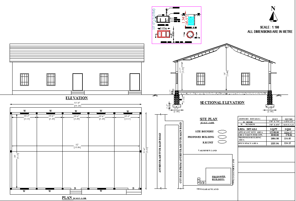 53'X31'Truss building Blueprint floor plan is given in this AutoCAD DWG file. In this drawing, floor plan area details, site plan, septic tank details, Elevation, and section details are clearly given. Download 2D Autocad Drawing DWG file and PDF file.