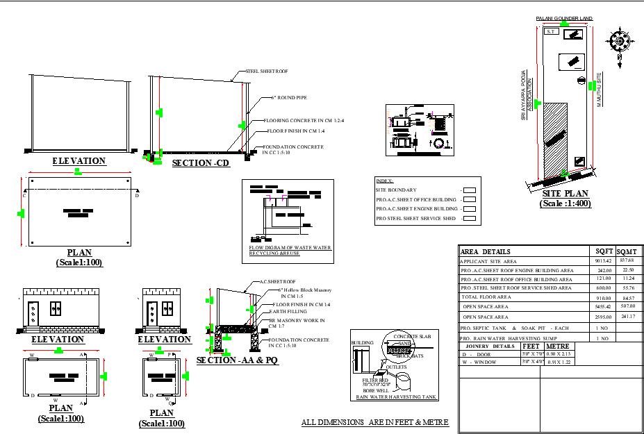 22'X 11' small Engine room Blueprint floor plan is given in this AutoCAD DWG file. The engine room and the office room are available in this drawing. The room dimensions of the shops are varying in each. In this drawing, area details, site plan, septic tank details, Elevation, and section details are clearly given. Download 2D Autocad Drawing DWG and PDF file.