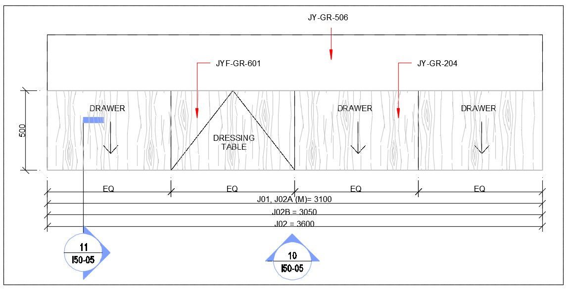 Drawer top plan detail is given in this cad drawing file. 500 3600mm size of it and the material used in it is MDF and dressing table also mentioned in this file. this can be used for interior and architecture drawing files. thank you for Download this 2d AutoCAD drawing file.