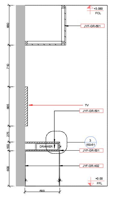 Section detail of drawer and overhead storage detail is given in this cad drawing file. Download this 2d Auto-CAD drawing file.