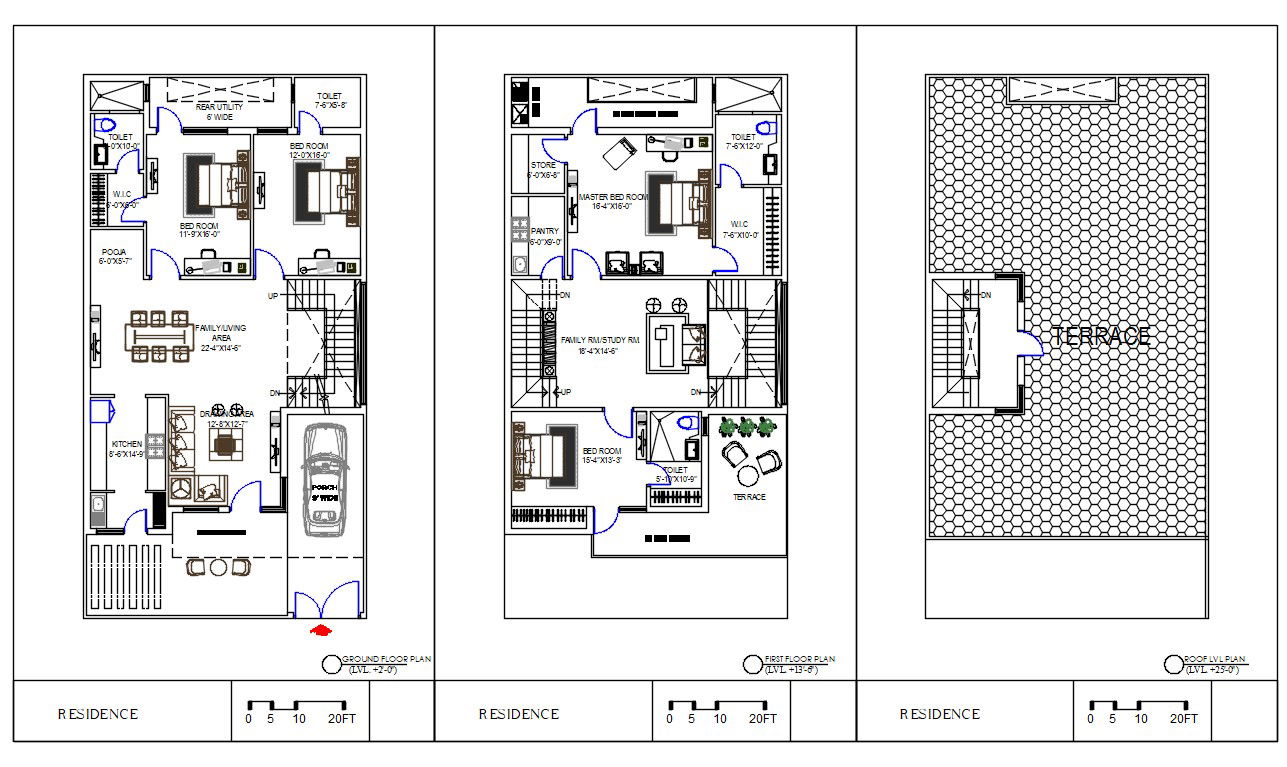 Defined functional consideration of each area, the proposal of formal & informal living separately to make better experience of volume, four-bedroom with dress & toilet to maximize the comfort of daily life. Achieved efficient area in optimum size of land patch, best suitable for mid-range house investment.