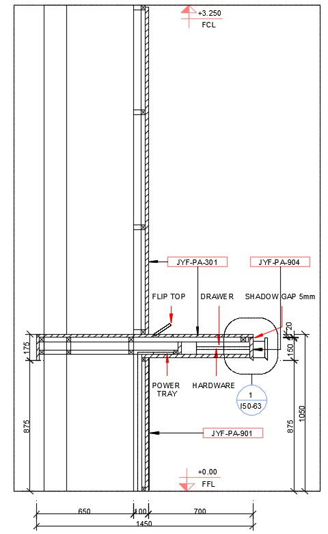 Section detail presented in this AutoCAD drawing file. flip top, drawer detail, the shadow gap, power tray, hardware detail is given in this cad drawing file. this can be used for interior and architecture drawing files. Download this 2d AutoCAD drawing file.