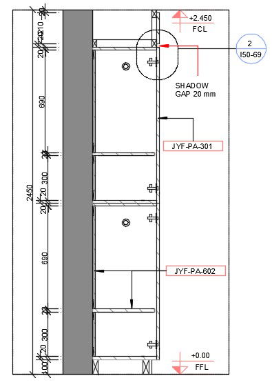 Section detail of full hight wardrobe given in this cad file. joinery detail of hinge and partition detail with the shadow gap given. dimensions detail with projections line. this can be used for interior and architecture drawing files. Download this 2d AutoCAD drawing file.