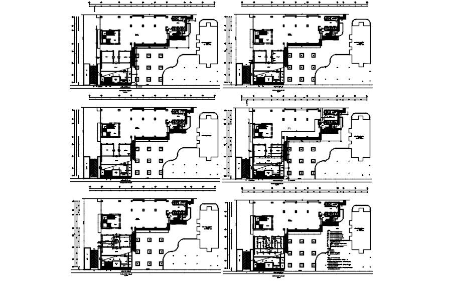 Six floors Column plan of the Hotel building and typical section details are given in this AutoCAD DWG drawing.Download the free AutoCAD 2D DWG file.
